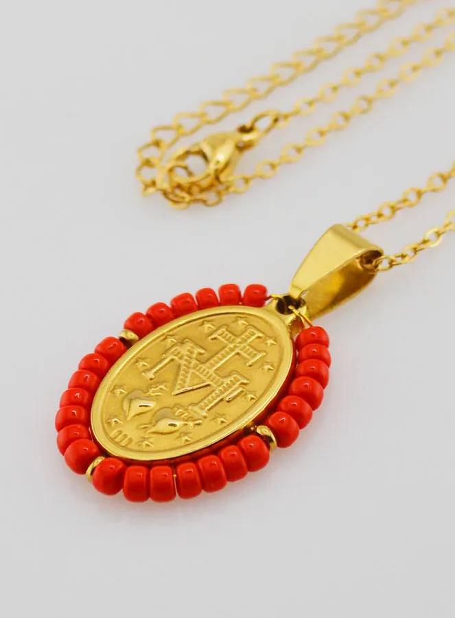Religiöse Halskette und Wundertätige Medaille - Rote Perlen