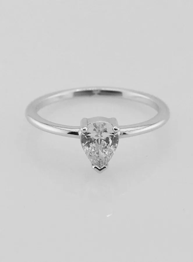 Solitär-Tropfenring aus Silber und Zirkonia - Größe 54, wunderschöner Ring aus rhodiniertem 925er Silber mit einem tropfenförmigen Zirkoniastein, Größe 54, ein perfektes Verlobungsgeschenk!
