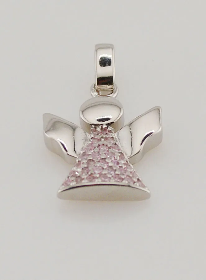 Anhänger zur Taufe Schutzengel aus Silber und Rosa Zirkonia - 15 mm