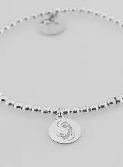 Kugelarmband Filigrane Kreuz und Maria mit Kind - 925 Silber, dieses elegante Kugelarmband aus 925er Silber besteht aus 3mm Silberperlen, die auf ein extra starkes Gummiband aufgezogen sind, und 2 silbernen Anhängern (10mm). Länge 19cm.